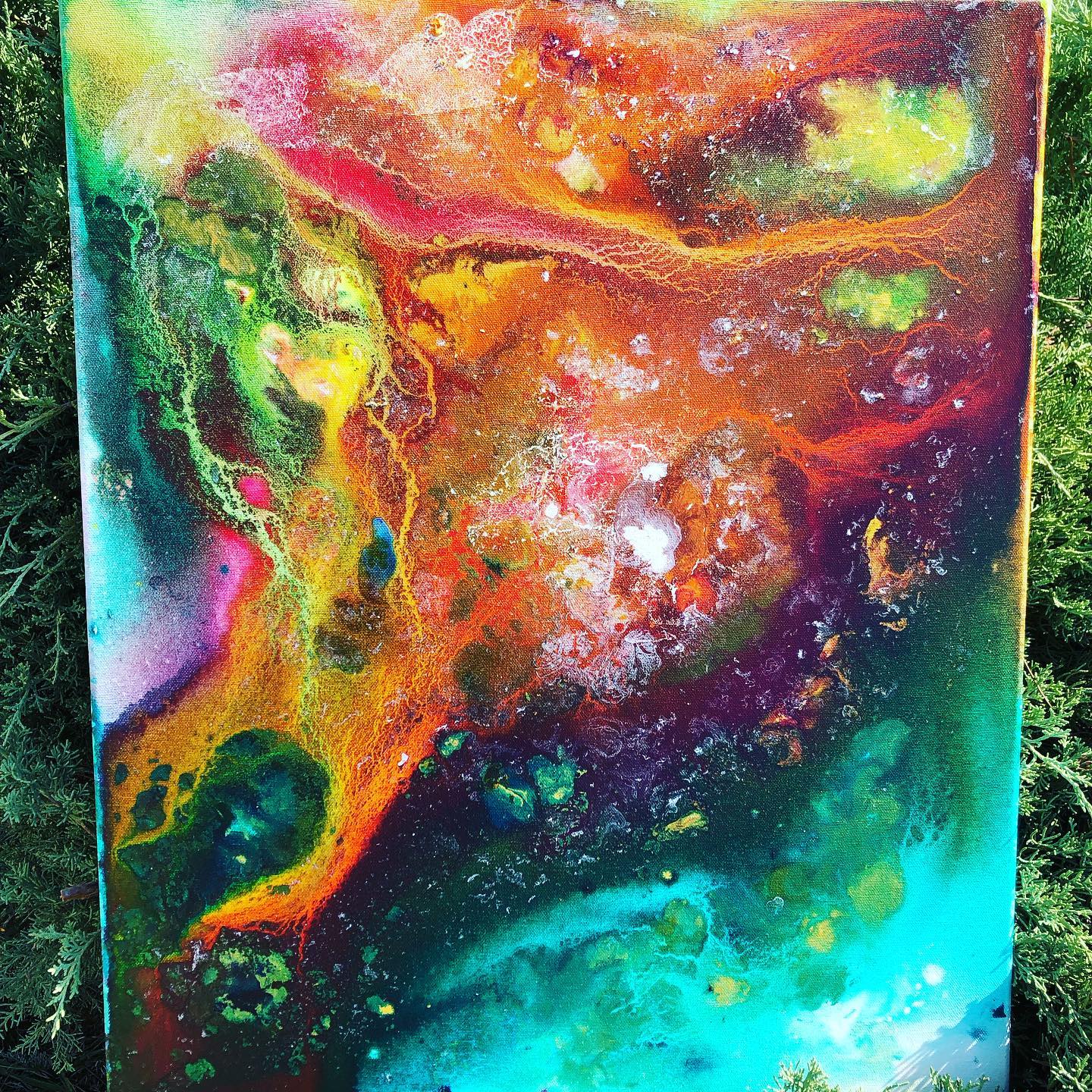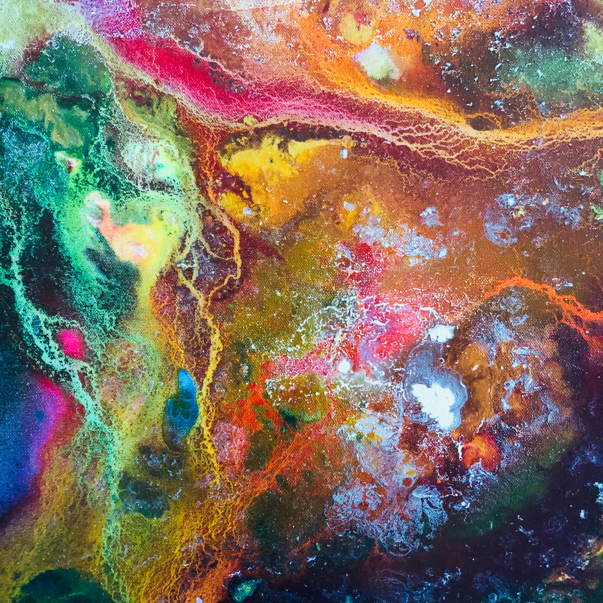 Accrochage immédiat de l'œuvre, prêt à l'usage (contour de la toile peinte ainsi que système d'accroche inclus).