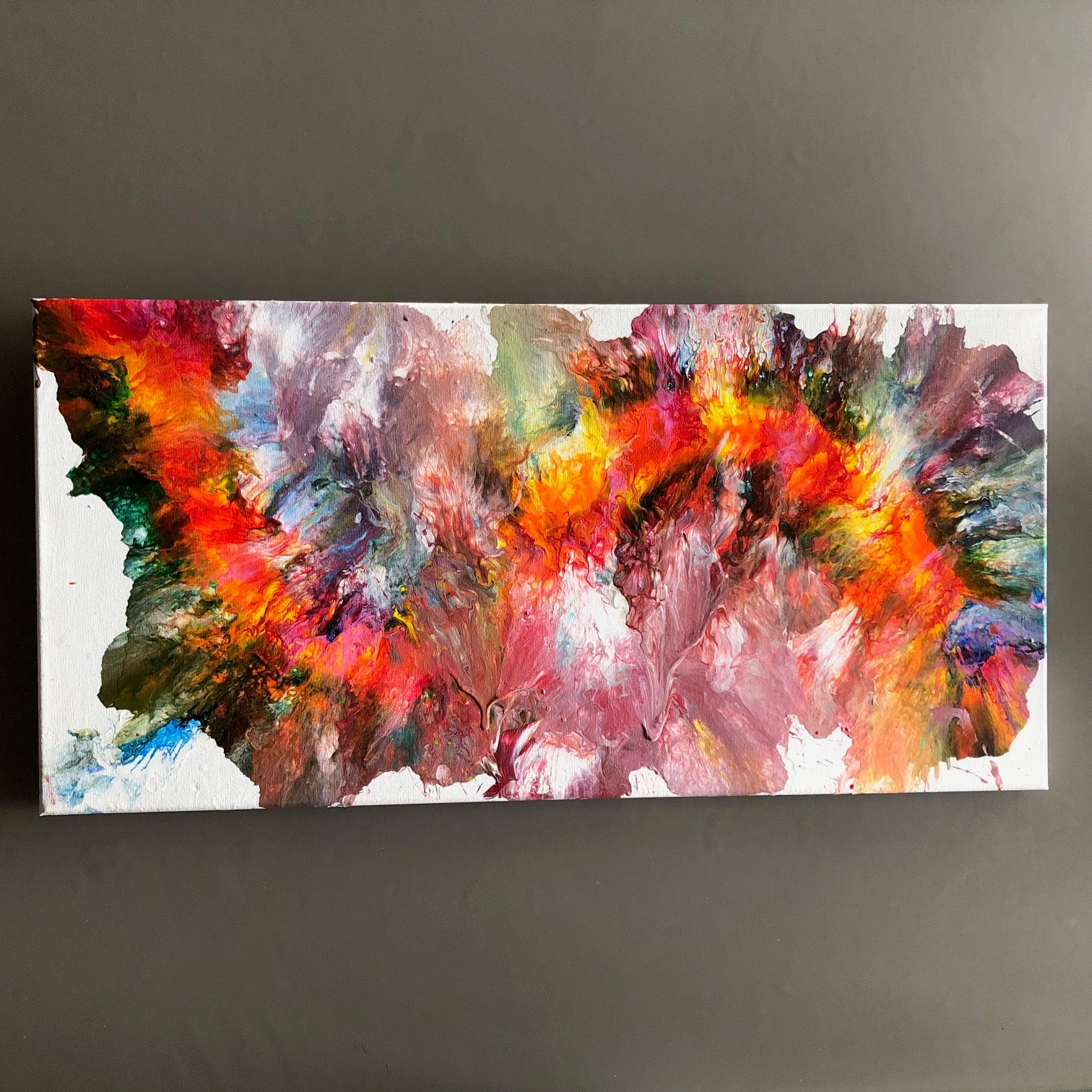 Accrochage immédiat de l'œuvre, prêt à l'usage (contour de la toile peint ainsi que système d'accroche inclus).