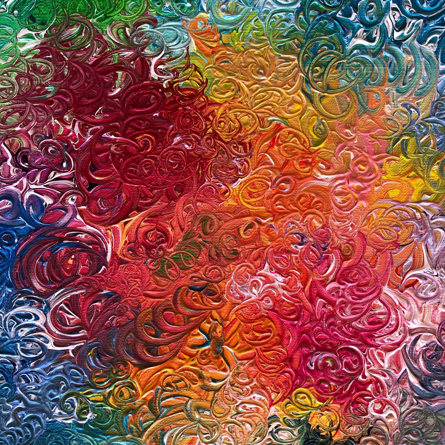 Une toile en lin sur laquelle est représentée des ronds colorés