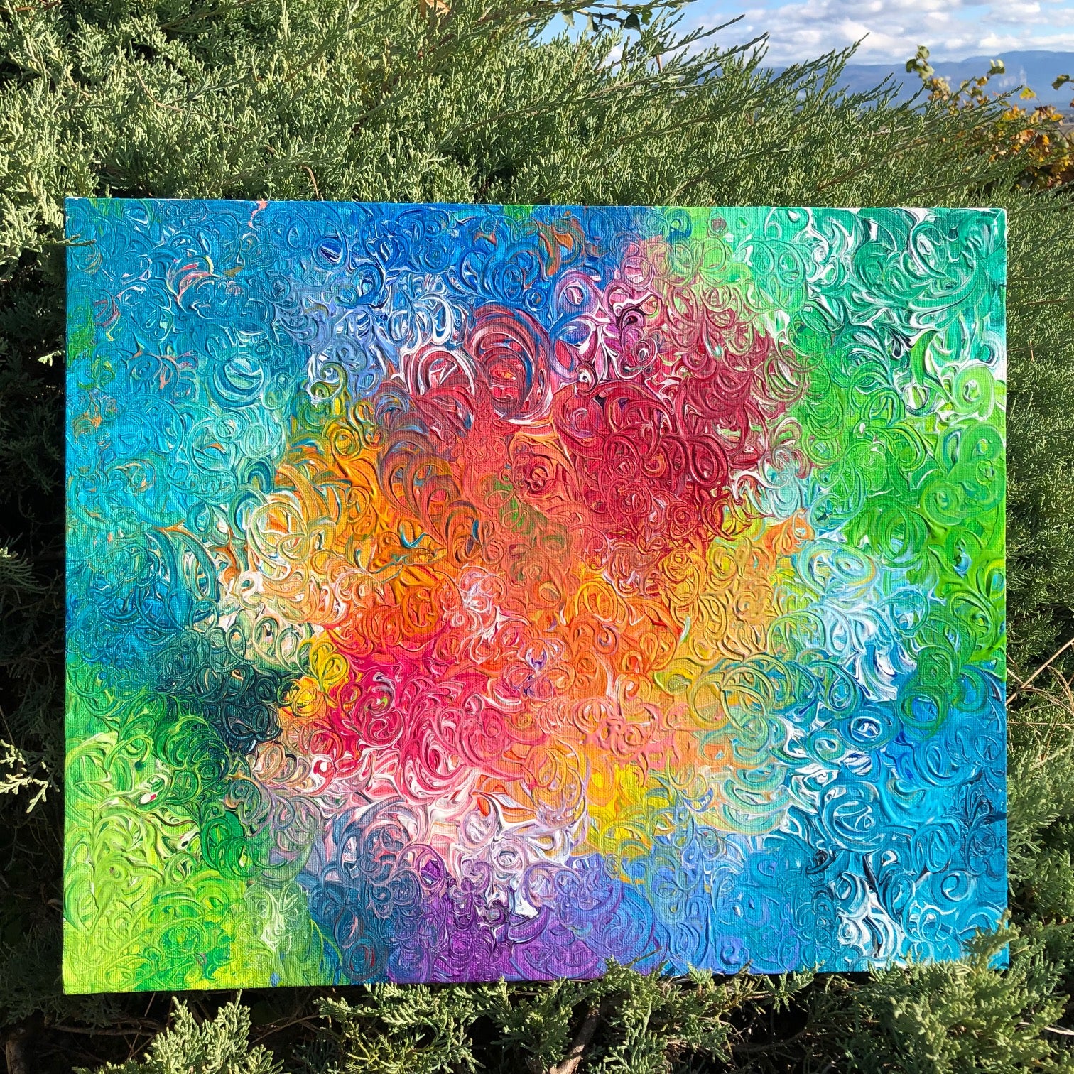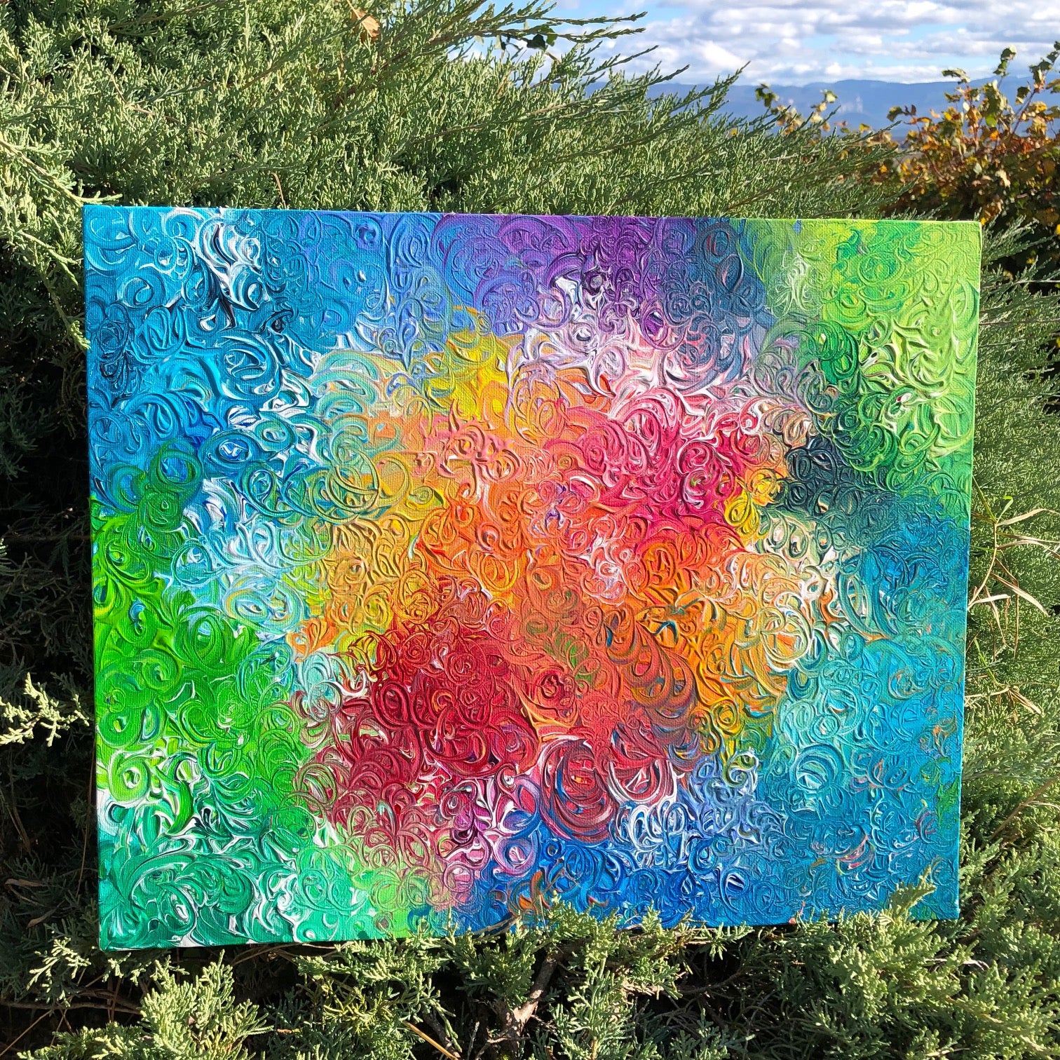 Accrochage immédiat de l'œuvre, prêt à l'usage (contour de la toile peint ainsi que système d'accroche inclus).