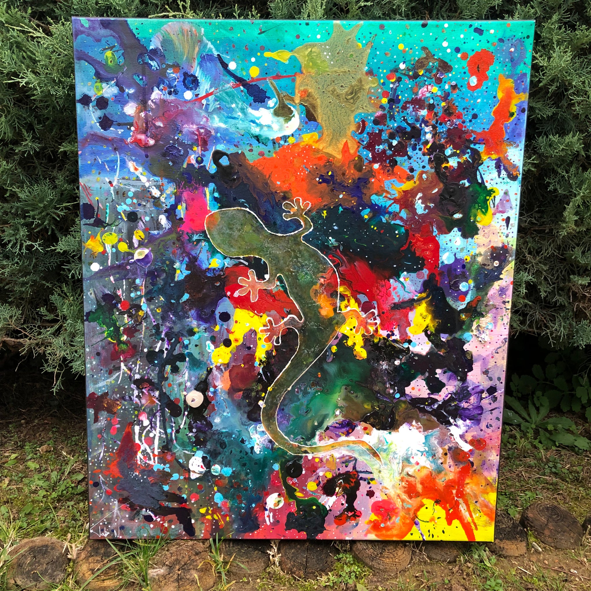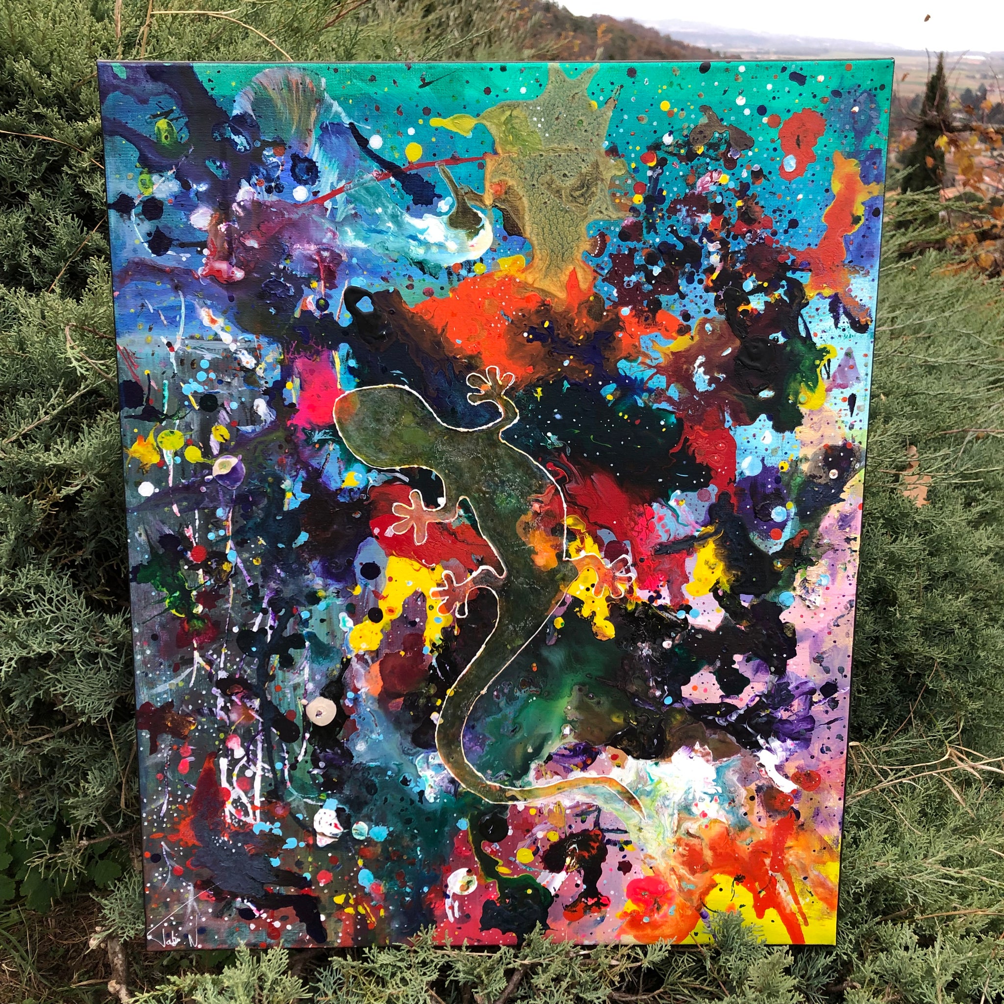 Accrochage immédiat de l'œuvre, prêt à l'usage (contour de la toile peinte ainsi que système d'accroche inclus).