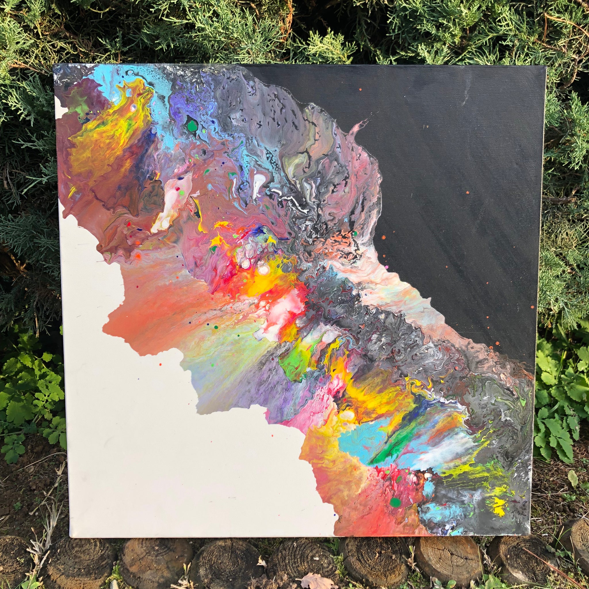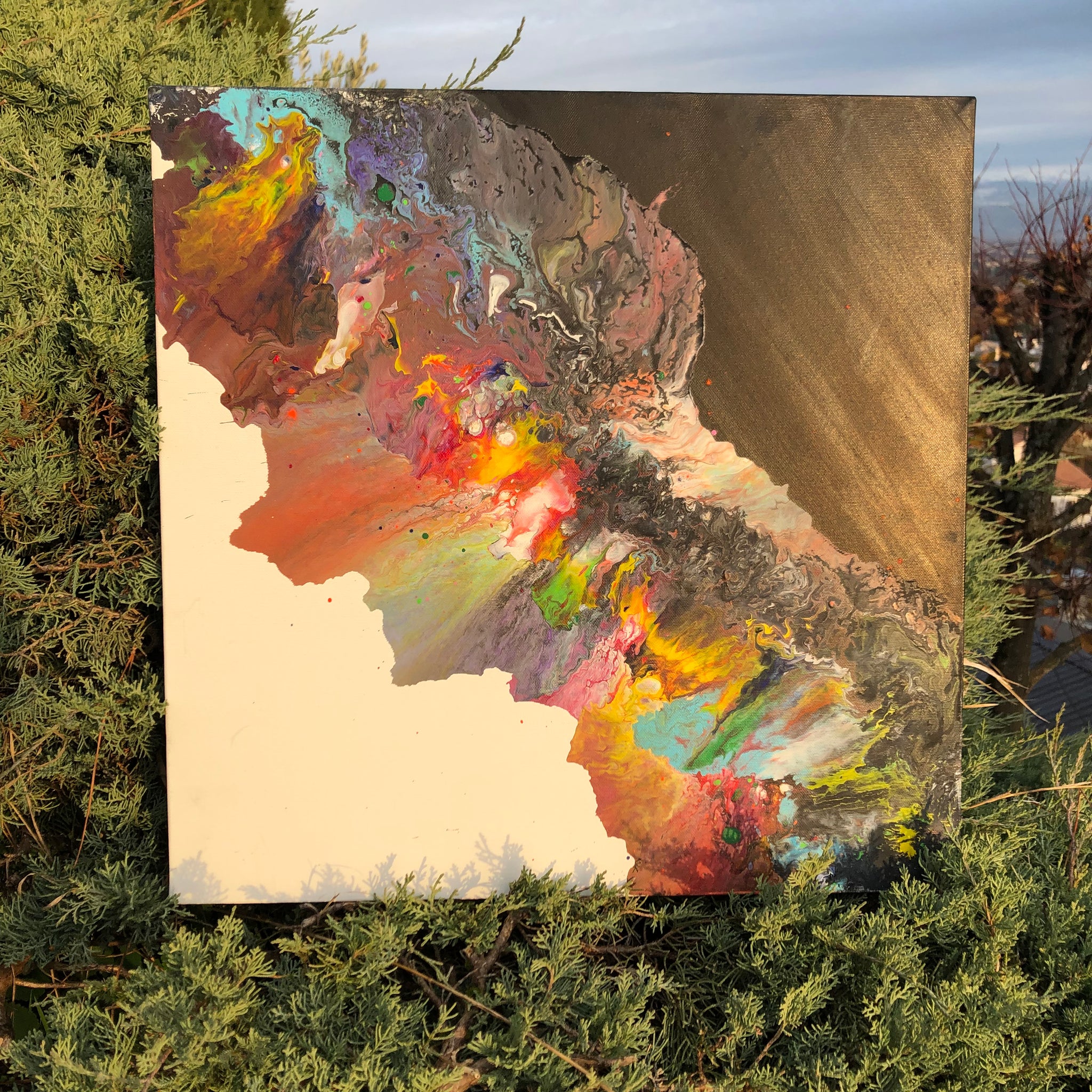 Technique : Acrylique sur toile & coulée