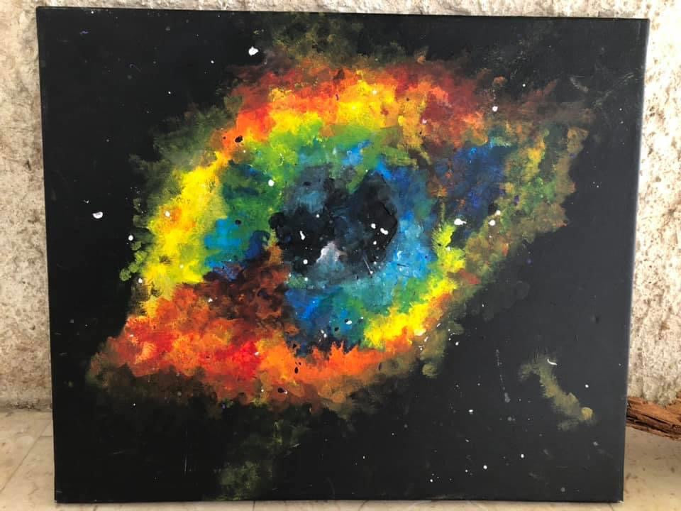Une toile en coton sur laquelle est représentée un œil dans l'espace