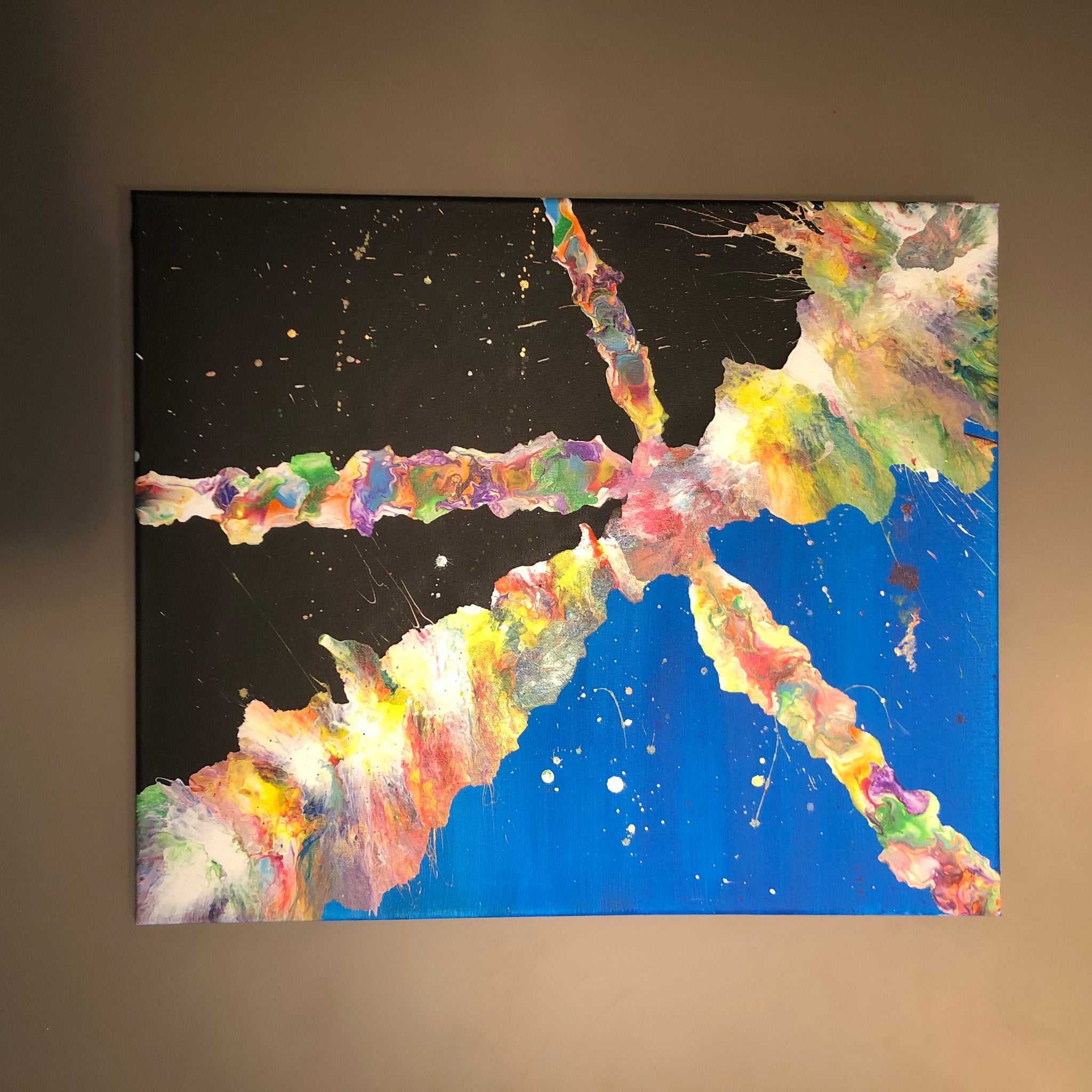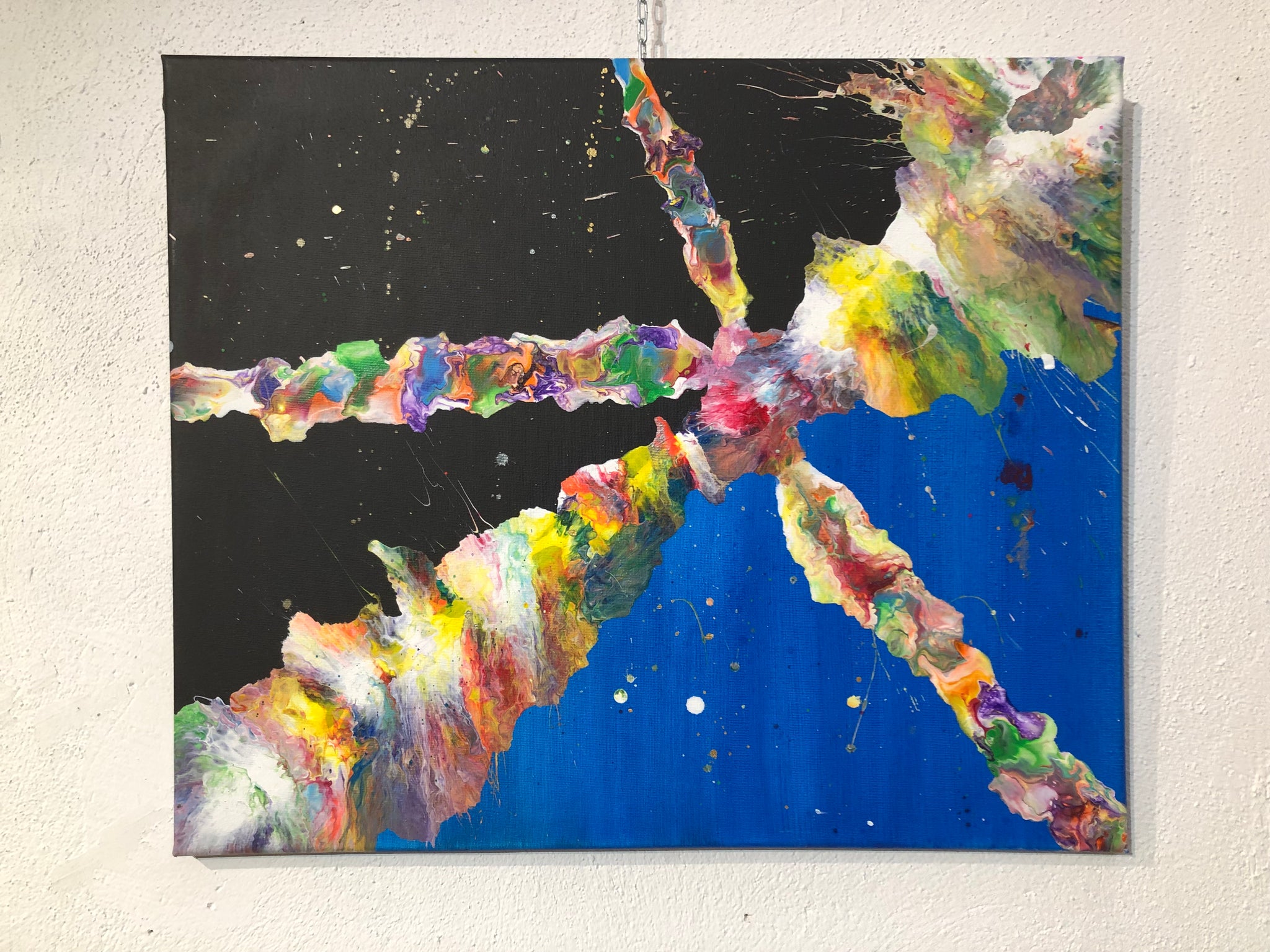Accrochage immédiat de l'œuvre, prêt à l'usage (contour de la toile peinte ainsi que système d'accroche inclus).
