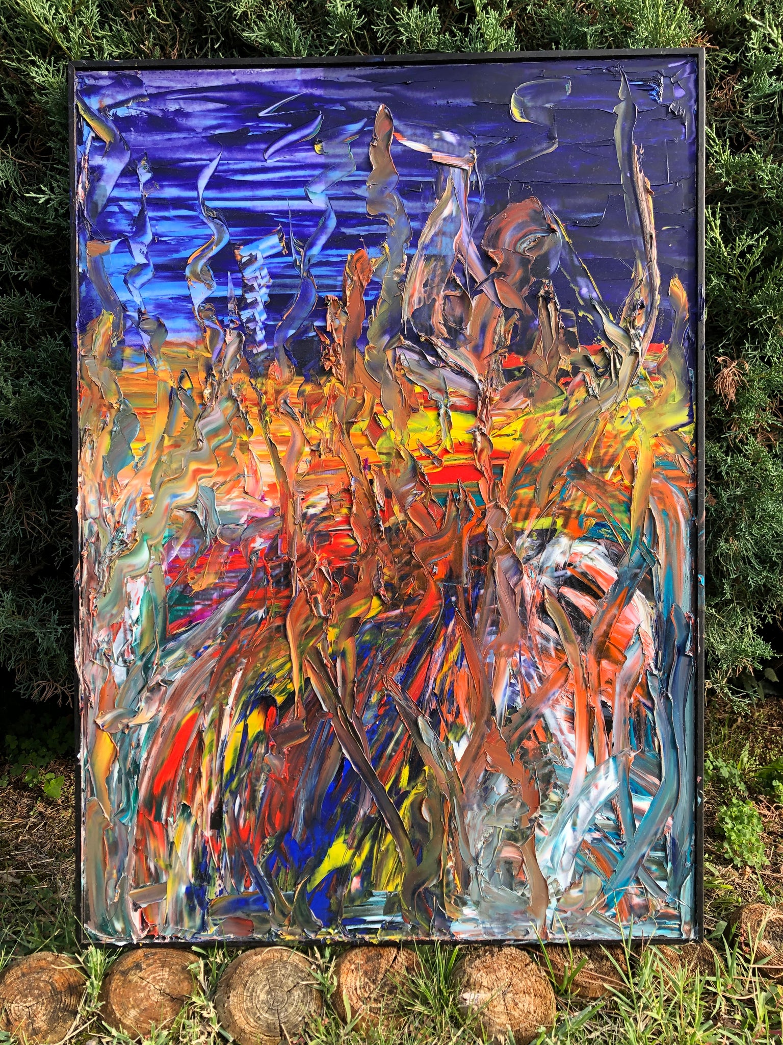 Accrochage immédiat de l'œuvre, prêt à l'usage (contour de la toile peint ainsi que système d'accroche inclus).